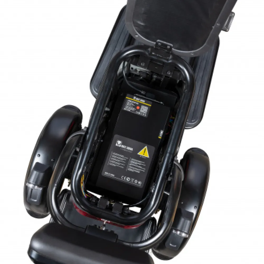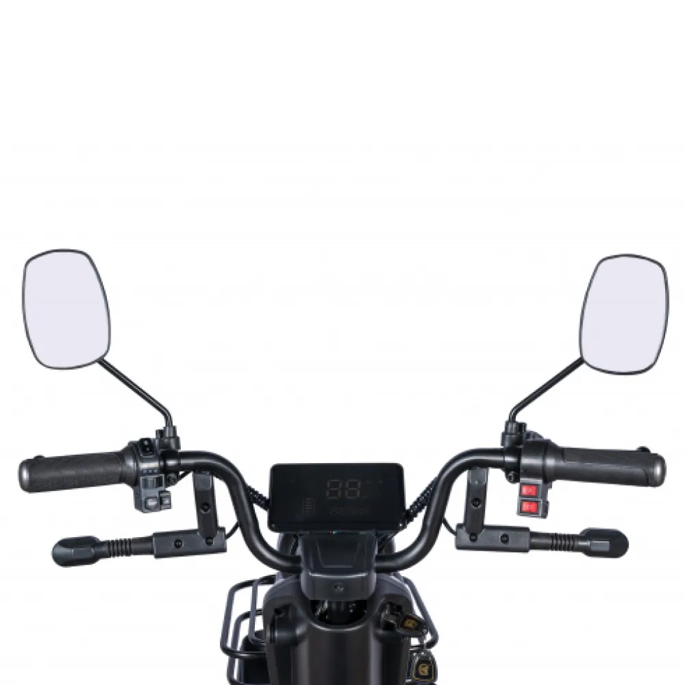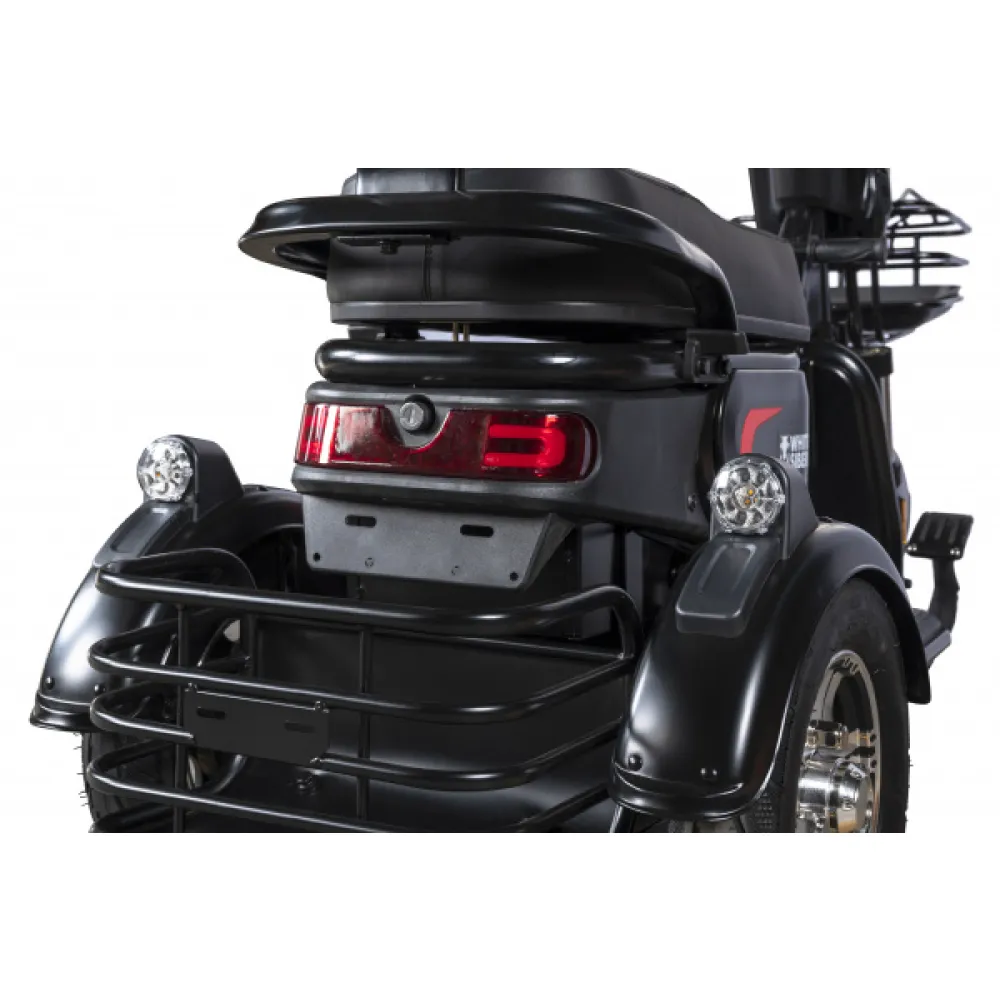 Технические характеристики трицикла позволяют выдерживать вес до 200 кг развивать скорость до 35 км/час и преодолевать на одной подзарядке приличное расстояние. Безопасность райдера обеспечена качественной тормозной системой, зеркалами заднего вида, яркой большой фарой и нескользящими ручками газа. При соблюдении требований производителя и осторожном вождении бояться падений или других форс-мажорных обстоятельств не следует.