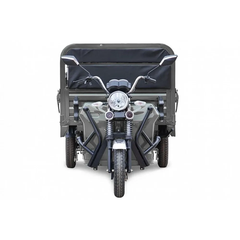 Грузовой электротрицикл Rutrike D4 NEXT 1800 60V1200W серый – техника для самодостаточных уверенных в себе личностях. Выглядит строго и шикарно одновременно, привлекает взглялы посторонних. Электроцикл полезный для лиц, занимающихся коммерческой деятельностью и сельским хозяйством. В последнее время модель стала интересна рыбакам, планирующим длительное времяпровождение около водного источника.