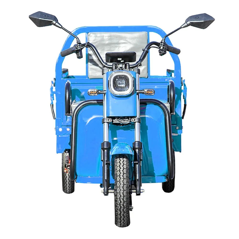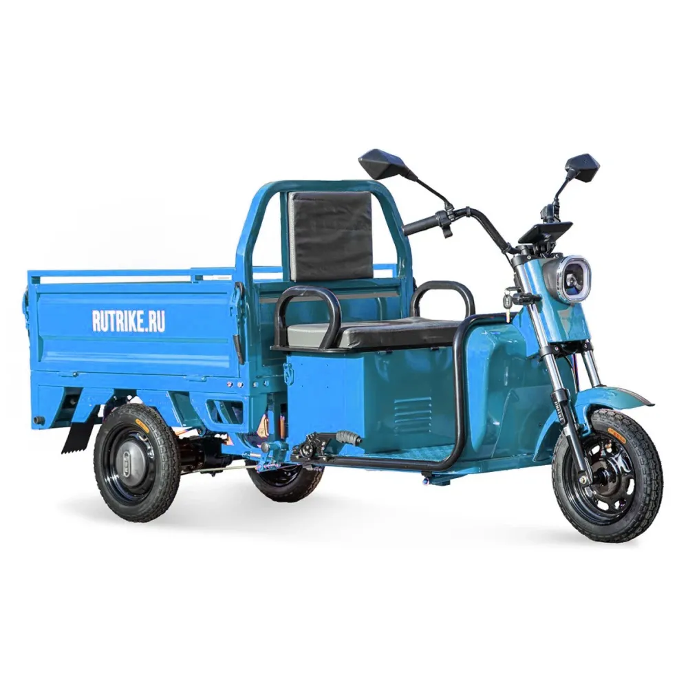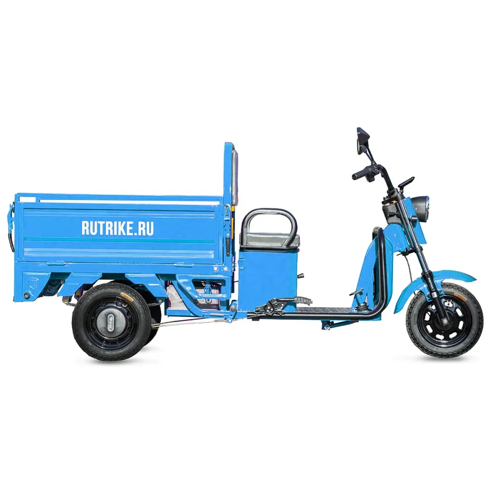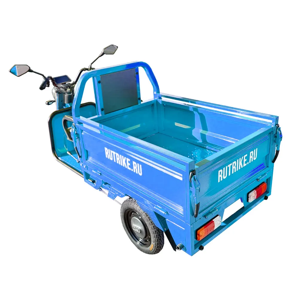 Грузовой электротрицикл Rutrike Амулет 1100 60V650W в синем цвете с мощным мотором, большим пробегом и удобным багажным отсеком является идеальным решением для тех, кто ищет надежное и эффективное средство для перевозки грузов на небольшие расстояния.