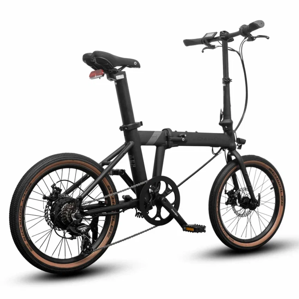 Алюминиевая рама обеспечивает лёгкость и прочность, руль 6061 Aluminum шириной 580 мм регулируется для комфорта, а подседельный штырь из алюминия фиксирует посадку. Аккумулятор Samsung 36V 9.5Ah даёт энергоэффективность благодаря литиевым ячейкам, влияющим на пробег до 40-50 км в эко-режиме (реальная дальность: 30-40 км в смешанном, 20-25 км на подъёмах или полной нагрузке). Механические дисковые тормоза DAHON и мотор 250W справляются с горками до 15% уклона и неровностями; режимы езды (Eco, Drive, Sport, если предусмотрены) регулируют скорость до 25 км/ч, повышая эффективность на 15-20% в эко. Быстрая зарядка отсутствует, стандартная — 4-6 часов с эффективностью 90%.​